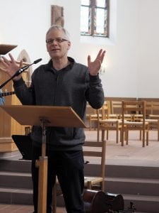 The sermon of the thanksgiving service was given by RectorBenedict WalkerHe gave three tips and explained a practical exercise on how to discover traces of God in everyday life. Firstly, it is important to recognize that God is sovereign and can reveal himself everywhere. Secondly, people should admit that they are forgetful and repeatedly sin. Thirdly, there needs to be reconciliation with one’s own history. The practical exercise that the rector explained works with beans as memory aids. For every little thing that you experience every day, you could put a bean from your right pocket into your left trouser or jacket pocket. In the evening you use the bean to remember the experiences and thank God for them.