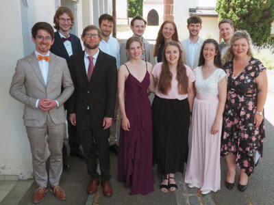 The 2025 graduates of the Bachelor’s program in Theology & Music with their program director Susanne Hagen.