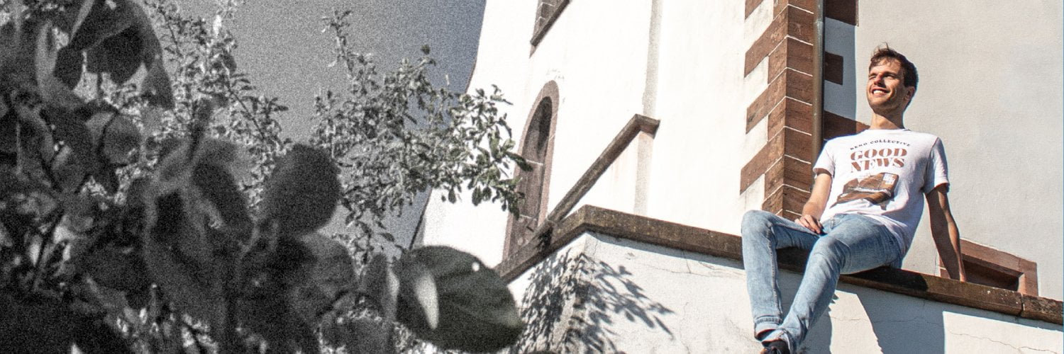 A student sits on the wall near St. Chrischona Church. His T-shirt bears the inscription «Good News.» The cover of the brochure reflects the founding philosophy of 1840, which is still deeply rooted at tsc today: «To train young craftsmen so that they can live and spread the gospel in word and writing in a way that is understandable to the people.» It is still possible to study at tsc without a high school diploma or university entrance qualification. Craftsmen are also among today’s students.