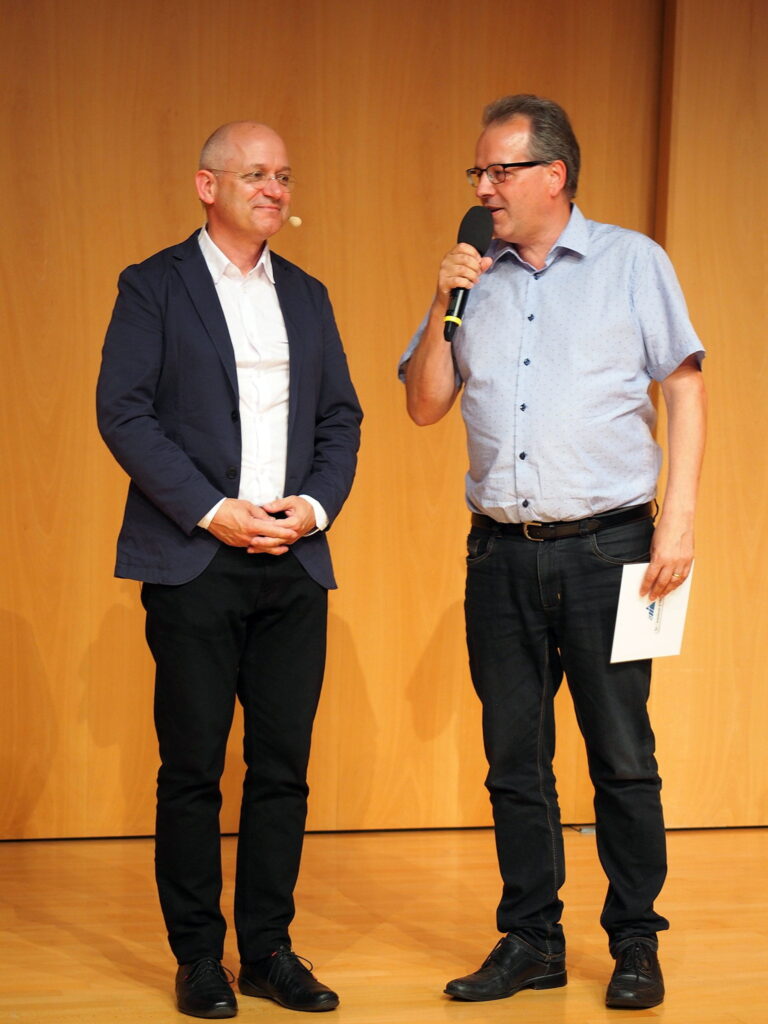 Pfarrer Heiner Schubert (im Foto links) von der Kommunität Don Camillo gibt geistliche Impulse für die Studiengemeinschaft am tsc.